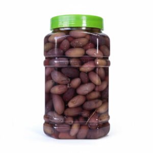 زيتون كالاماتا طبيعي، ذو لون أرجواني داكن ومذاق غني، مخلل بالطريقة التقليدية بدون أي مواد حافظة.